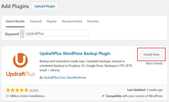 Start by going to plugins > Include New and looking for ‘UpdraftPlus.’