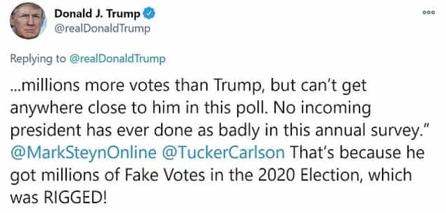- Trump tweeted that survey backs up his claims that he is real winner of election