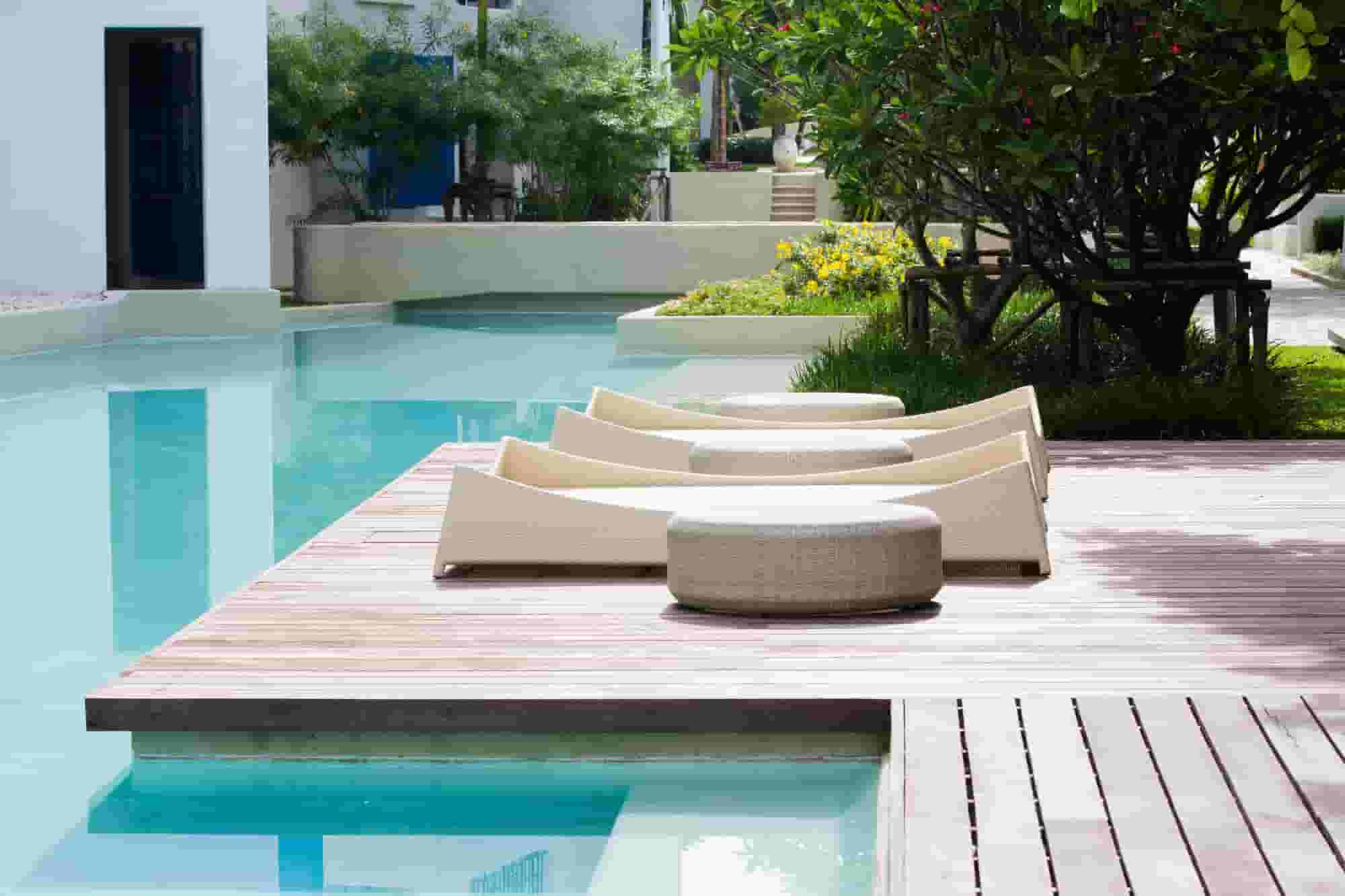 An above-ground pool with a deck is among the most economical and practical ideas for backyard pool designs. The budget-friendly pool allows you to enjoy the cool water of an in-ground pool with fewer installation and maintenance costs.