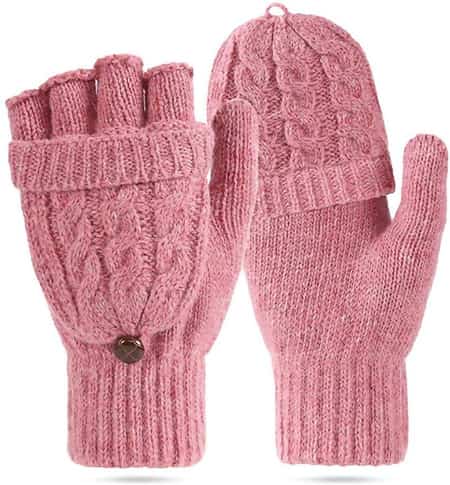 XINGFAN Convertible Fingerless Gloves w/ Mittens Cover Cap in Pure Pink, $11.98