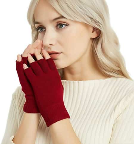 Novawo Cashmere Wool Blend Fingerless Gloves in Wine, $12.99